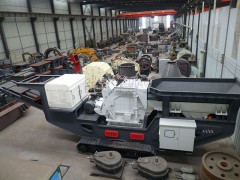 中厚履带式移动破碎站是根据市场需求,自主研发创新的履带式车用底盘行走的移动破碎筛分设备。是目前国内市场上的移动破碎站,能够在行进中进行移动,结构紧凑,工艺先进且产能大。是目前矿山中移动为方便的一种设备,因为其有一对履带,驱动移动破碎站前进,该设备技术先进,功能齐全,在矿山中运行自如。
